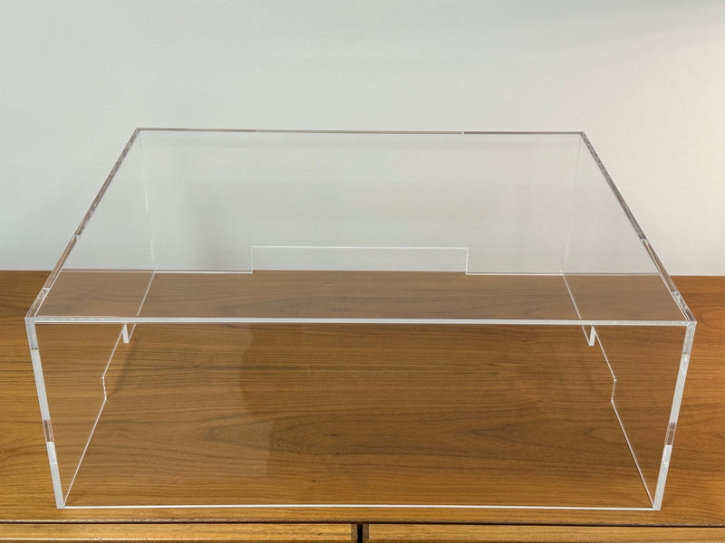 This new acrylic dust cover is suitable for your Clearaudio Emotion turntable. The dust cover is made of high-quality acrylic and produced so that it will fit perfectly over your Clearaudio Emotion. Dimensions are: 502 x 412 x 185 mm (W x D x H) thickness of acrylic is 5 mm. Not a Clearaudio product.