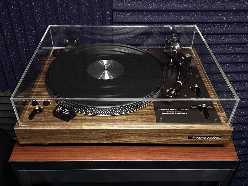 This new acrylic dust cover is suitable for your Realistic LAB-400 turntable. The dust cover is made of high-quality acrylic in the same dimensions as the original cover, so that it fits perfectly on the original housing of your Realistic LAB-400. This is a copy of the original dust cover - not a Realistic product.