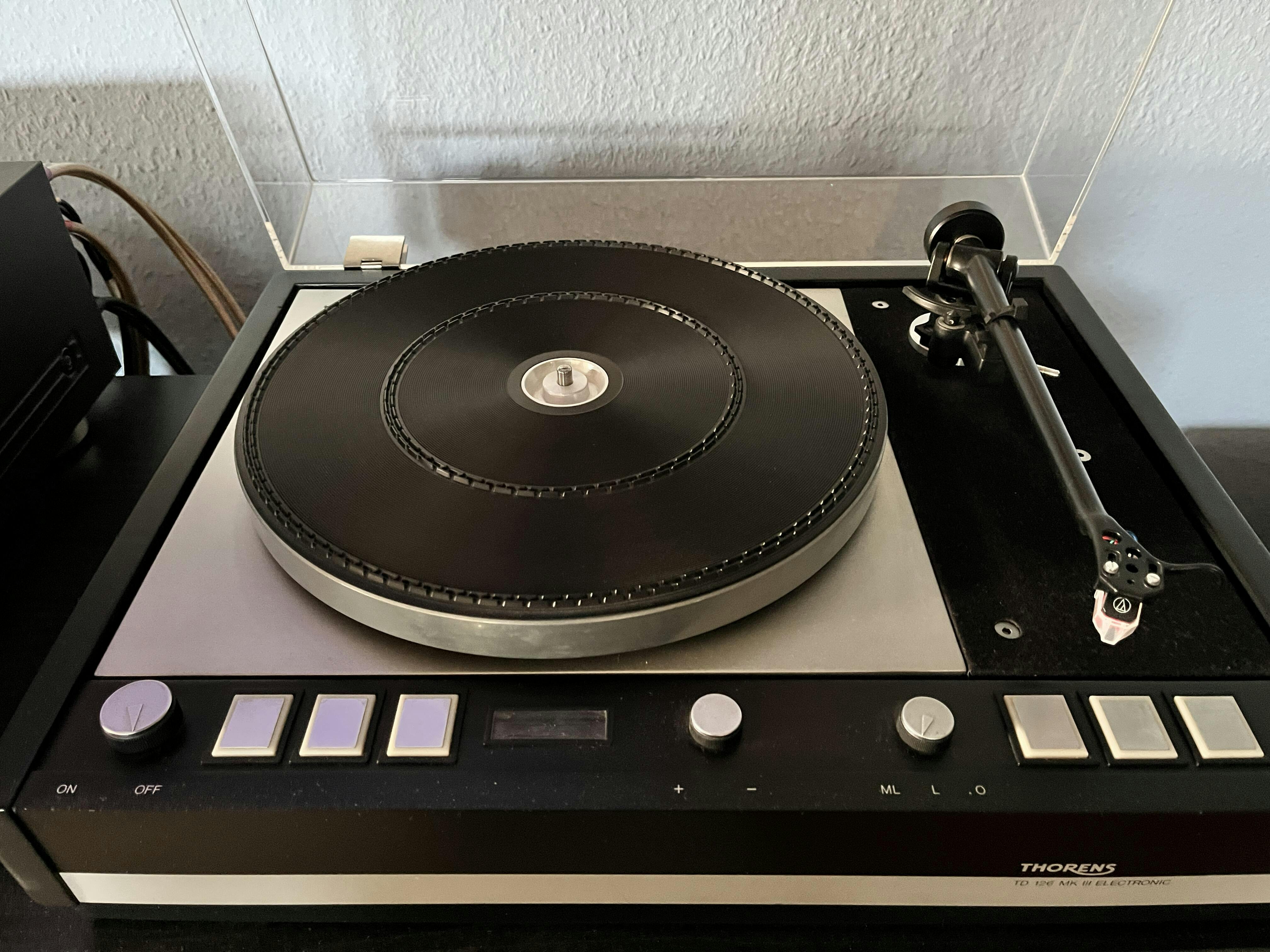 This new high-quality acrylic cover is suitable for all Thorens TD 126 MKI MKII MKIII turntables. The transparent cover is made from high quality Acrylic polished glass with a thickness of 4.0mm and fits perfect on your Thorens TD 126 MKI MKII MKIII Turntable - see pictures. Dimensions are 478 x 367 x 82 mm (WxDxH). Not a Thorens product.